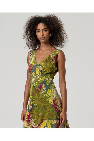 Vestido Surkana punto estampado hojas grandes 526MILE716