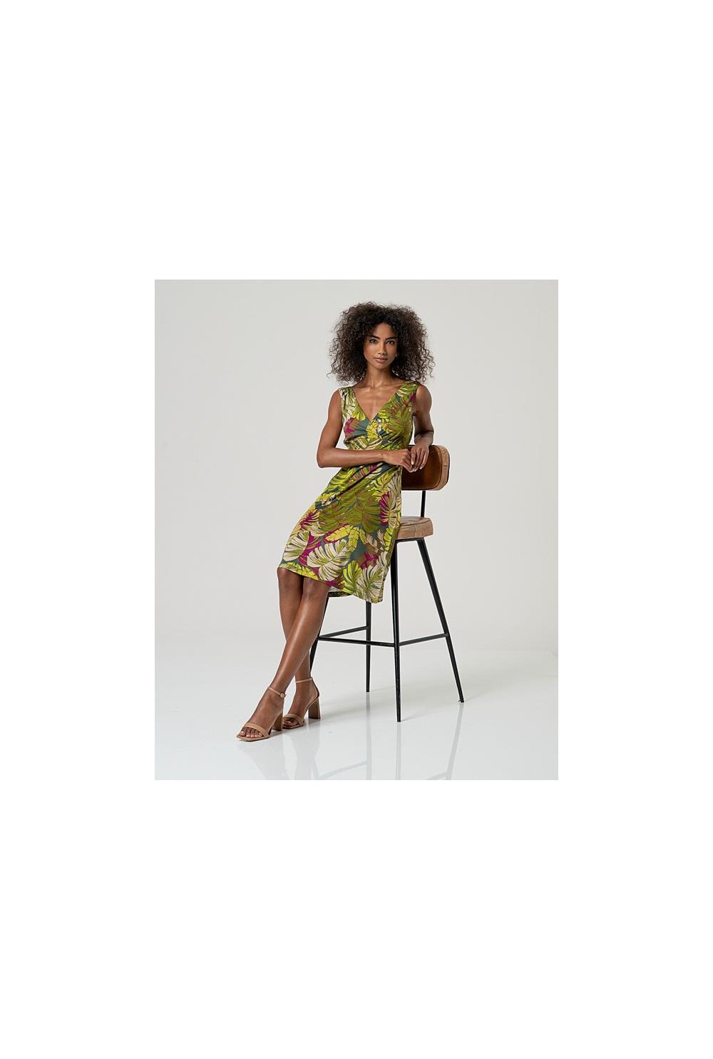 VESTIDO TIRANTE DE ESCOTE PICO CRUZADO. DISEÑO TALLE ALTO. TEJIDO EN PUNTO DE SEDA CON ESTAMPADO SELVÁTICO FAVORECEDOR Y LIGERO. PARA LAS QUE PRIORIZAN LA COMODIDAD ES IDEAL. TAMBIÉN SI VIAJAS. COMPOSICIÓN: 100% LYOCELL